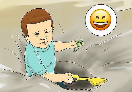 Dig a hole and fill it with water. Toddlers love digging in the sand! Use sticks, shovels, or just your hands to dig a hole. Either fill it with water yourself, or dig deep enough and watch it fill up on its own.