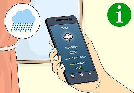 Watch the weather and wind report. You probably know to avoid the beach on days with a threat of thunderstorms, but you should also check the wind speeds and tide level before you head out. High winds can lead to a choppy surf, especially at high tide, and this can overpower small children playing in the water. You should also look online for a water quality report, as sometimes high levels of bacteria, algae, or pollutants can make the water unsafe for swimming.