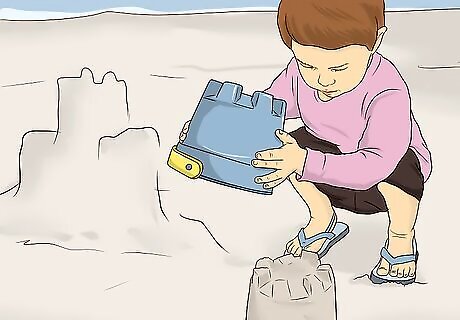 Build a sandcastle. Your toddlers might not have enough patience to build an elaborate palace, but you can have fun building up a castle together and then knocking it down. For a variation on a sand castle, try a drip castle. Pour wet sand into a funnel, then drip it over piles of sand to create cool designs.