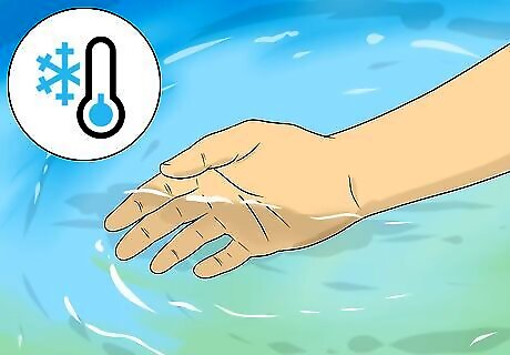 Check the temperature of the water before your children swim. Children lose body heat more quickly than adults, so check the water temperature before they get in. If the water seems cold to you, it will be very cold for your toddlers. A safe swimming temperature is 82–86 °F (28–30 °C). Stay in the sand if the water is very cold, and take children out of the water and wrap them in a dry towel if they are shivering or their lips appear blue.