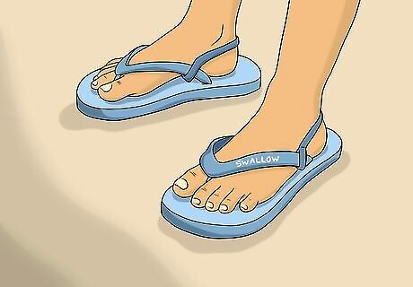 Choose flipflops or sandals for your little ones. Hot sand can burn toddlers’ feet, so make sure they are wearing appropriate footwear, like strappy sandals or flipflops. This will also help protect their feet from sharp rocks, shells, or items left by other beachgoers that may be hidden in the sand.