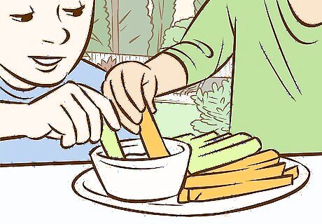 Serve snacks. Depending on what time you’re hosting your party, you might want to consider serving snacks. If you have the budget, catering your child’s birthday party is an easy option that saves you time, but if not, you might want to look into some easy group meal options to feed your guests. Don’t forget to purchase paper plates and plastic cutlery -- you don’t want to be stuck using real plates for the food or cake. Keep in mind that most children can be picky eaters!
