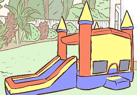Hire a bounce house or trampoline. If you have the space and you’re planning an outdoor party, a bounce house or trampoline might be a great addition to your party! These structures usually come with their own set up and clean up, and they also provide the children with unlimited fun. If you do hire such a service, make sure you follow to all of their rules.
