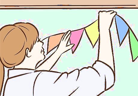 Select a theme. A theme helps encourage involvement and makes decorating easier! Ask your child what theme they’d like. Once you have a theme, it may be easier to brainstorm decorating ideas and/or activities. For example, planning the decorations for an outdoor competitive adventure party is very different from the decor one might expect at a princess party. When decorating, consider banners, balloons, streamers, or other colorful decorations!