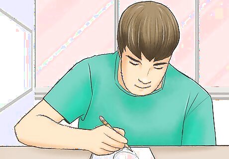 Write. You can write a story, a poem, or a journal. Try to get some experience writing and get your feelings out. If you’re going to have a lot of time on your hands, start a larger piece like a novel. Once you get into it, you might not be able to stop writing. For a story, think about characters. Imagine what makes them special and different. Why do they do what they do? What is the obstacle they must overcome? That is your conflict. Focus on how their personalities bring them into conflict and how that conflict is resolved. If you’re writing a poem, try starting out with free writing. Just get your feelings down on page. Read it out loud to see what it sounds like. If you can’t think of your own characters, consider writing fan fiction. Some people enjoy taking characters or settings from famous movies, books, and comic books and writing their own adventures. You can share your stories later, when you have computer access again, or you can just keep them to yourself.