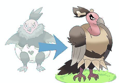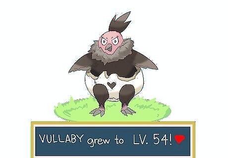 Raise Vullaby to level 54. Battle Vullaby against other Pokémon to level it up. Once Vullaby reaches level 54, it evolves into Mandibuzz. Avoid battling Vullaby against Pokémon that have electric, rock, ice, or fairy attacks. You can also use Rare Candy to level up Vullaby.