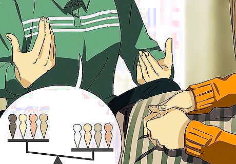 Teach teens to become aware of microaggressions. Microaggressions are everyday verbal or nonverbal insults that often are not intended to be insults and may be hard to notice. Microaggressions usually result from hidden prejudiced beliefs that people often do not even know that they possess. Some microaggressions may even be intended as compliments such as someone saying to an Asian American, "You speak excellent English." A nonverbal microaggression could be something like someone clutching a purse before entering an elevator with a black man. There's a test called the Implicit Association Test, which helps you uncover your own biases and prejudices. Consider taking the test and talking about results with your teen: https://implicit.harvard.edu/implicit/takeatest.html Remember that everyone has prejudices, and the goal is to uncover and talk about them rather than trying to hide from them.