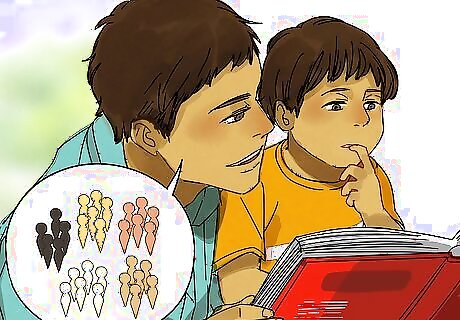 Seek diverse playgroups. The best way to build positive race awareness and tolerance is through exposure to difference. Check with your local community center to find inclusive playgroups. Observe your child's play and conversations and intervene when you sense a teachable moment around racism. However, if you're worried that your child of color will be seen as a "token" person to make a group more diverse, seek out a playgroup that's led by a teacher who's a person of color.