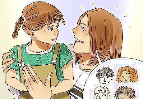 Describe racial characteristics in a positive and concrete manner. Toddlers and preschool-age children (2-5 year olds) cannot fully grasp the complicated nature of racism, but they are curious about race and difference. Point out that different traits-like skin color, hair texture, and facial features-are all beautiful. Don't try to make your kids "color blind." Small kids are naturally curious about difference. It's better to help them understand and value difference rather than ignoring it. Teach kids the words for what they see. If they have a question about why someone's hair is different, you can respond: "Yes, her hair is very curly and pretty. That style is called an afro." If your child points out that someone is dressed differently, teach them the word for the clothing: "She's wearing a sari. Isn't it a pretty color?" Highlighting difference in a positive way helps children of color develop a positive self-identity, and it helps white children think about the world as a diverse place.