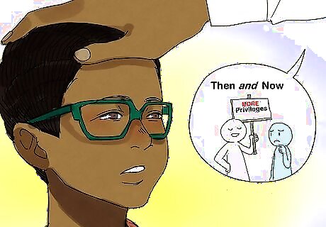 Teach older kids about structural oppression. Usually around the age of 12, kids will be able to understand more complex issues surrounding social injustice. At this point, you can introduce ideas about the history of racial oppression and housing discrimination. The historian, Howard Zinn's book A People's History of the United States is appropriate for teenagers and gives a good overview. His organization also provides a wealth of age-appropriate resources online: https://zinnedproject.org/materials/a-peoples-history-of-the-united-states/ You could say, "You know how Grandma has security because she owns a nice house in a nice neighborhood? Well, in the 1930s, she got money from the government to help her buy it. Lots of White families did. But at the same time, African Americans were not given money that they were entitled to from the government. Then, the banks refused to lend them money, too." Make sure to explain that racist oppression leads to further racist oppression. For instance, you can say, "Because they had to pay more for worse houses, African Americans couldn't save as much money. Living in worse neighborhoods meant they weren't able to choose which school the kids went to, or get certain jobs."