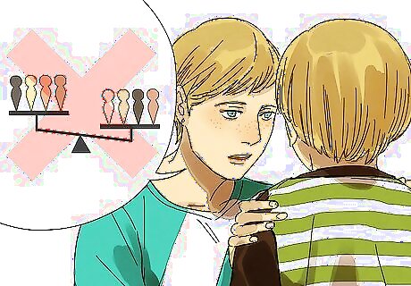 Encourage your child to be an ally. Teach kids to stand up for what is right. Let them know that they should stick up for other people if they are being treated in a racist manner. Explain that you should challenge the behavior, not the person. Tell kids not to call other people racist or any other names. Instead of calling a person racist, teach your kids to say, "That is a racist comment. Please do not say things like that."