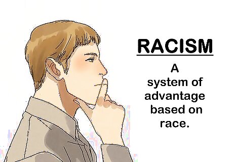 Understand prejudice. Prejudice refers to a "preconceived judgement or opinion, often based on limited information." Prejudice is both caused by racism, and it perpetuates racism. Prejudiced beliefs may be conscious. It can refer to ideas that people are aware of having and ideas they talk openly about. Or prejudice can be unconscious: people often do not know that they have prejudiced ideas. All people have prejudiced ideas. Prejudice is inevitable since we all have limited experiences and base our ideas on limited information. Having prejudice does not make a person a bad person. The important thing is that people remain open to identifying prejudices and correcting them if they help perpetuate racism.
