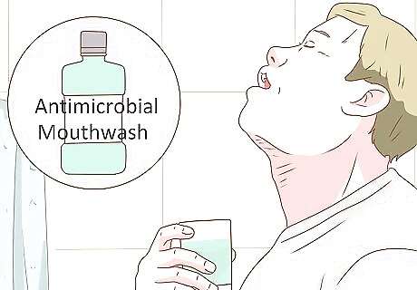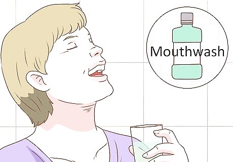 Gargle mouthwash. Fluoride mouthwash is important to help prevent tooth decay. If you have an infection, your dentist may even prescribe you a special antibiotic mouthwash. Once a day, gargle a mouthful of mouthwash for 30 seconds before spitting it out into the sink. Do not swallow.