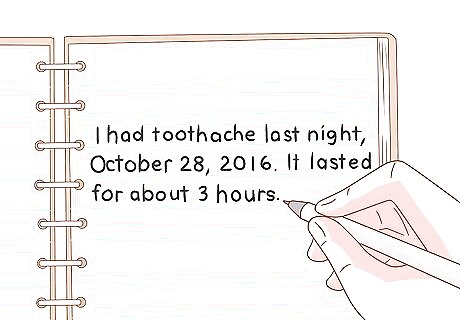 Write down when symptoms flare up. To help your dentist find the most accurate diagnosis, you should keep a record of when your symptoms occur. Writing down these details—either in a notebook, planner, or in your phone—can help you remember the specifics of your condition. Write down: When symptoms occur. How long symptoms last for. What activities you are doing when symptoms flare up. What you have eaten recently. When do they calm down and medication that calms the pain.