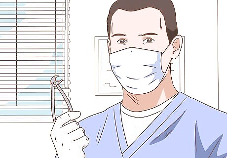 Talk about treatment options. If your infection is severe, you may have to undergo a procedure or surgery to correct the problem. You may even be referred to a specialized doctor such as a periodontist or an endodontist. Follow your dentist’s advice to receive the best care for your infection. Some common procedures include: Tooth extraction: the infected tooth is removed. Drainage: fluid that has built up in the gums or tooth is drained by the dentist. Root canal: infected root pulp is removed from the tooth, and the tooth is then filled with a rubber-like substance and antiseptic paste. Flap surgery: the gums are detached from the teeth in order to create enough space for a proper surgical intervention. The surgeon can then remove tartar, necrotic cementum, and infection from deep within the gums. Bone or tooth grafts: natural or synthetic bone is implanted to help promote bone growth.