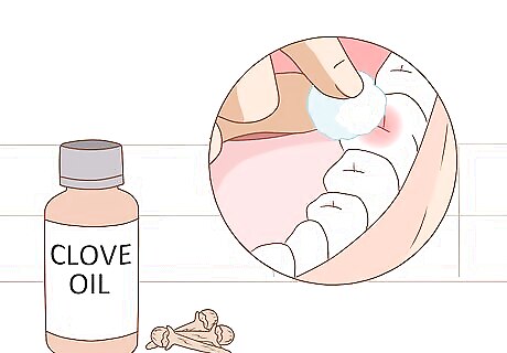 Apply clove oil to a sore tooth. Clove oil may be able to reduce the pain of the tooth while you heal. Apply a drop or two of clove oil to a cotton ball. Gently pat the cotton ball against the infected tooth.