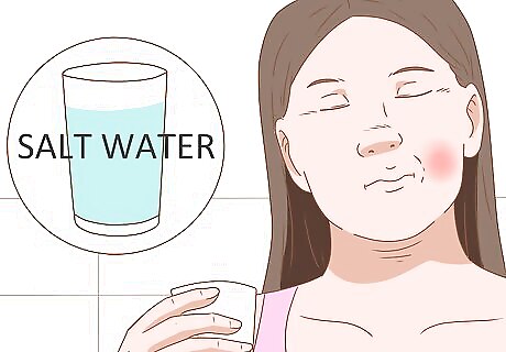 Rinse with warm salt water. Salt water rinses may give you some minor pain relief while preventing bacterial infection after dental surgeries. Stir ½ teaspoon of salt into eight-ounces of warm water until dissolved. Rinse your mouth with the water for 15 to 30 seconds before spitting out. Do not swallow.