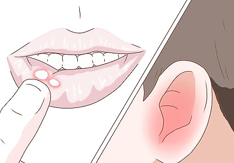 Locate the source of your pain. Mouth infection is typically accompanied by some type of localized pain. If you can identify what in your mouth is giving you trouble, you may be able to find the source of your infection. This includes: Pain in a particular tooth. Pain along the jaw, ear, or neck. Soreness of the gums. Mouth sores or cuts. Chewing or swallowing problems.