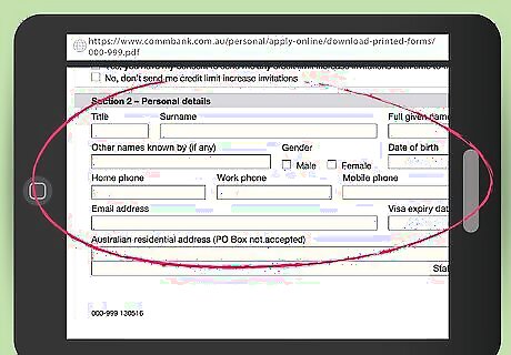 Provide your personal information. The application will ask you for your personal information. The issuer is looking to see if you have a stable residence, and if you are who you say you are. Information that you will typically provide includes: Name - Last, first, middle, surname, maiden name. Address including city, state, and zip code Phone numbers - Primary and secondary numbers. The length of time you have lived at your current residence Previous address and the length of time you lived there. Email address - Sometimes optional, but most financial institutions are going paperless and will insist. Your Social Security number is mandatory to secure credit. The number will be used for identification purposes and to obtain credit history.