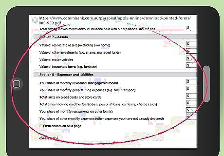 Provide your financial information. Your financial information is one of the most important parts of your application. The issuer wants to know if you are financially stable and the percentage of your income that you spend on housing. It looks more favorable if you have a higher income, own a home instead of rent, and have multiple bank accounts. Typical information includes: Annual income - Household. Bank information - Checking, savings, money market or IRA. Residence - Do you rent or own? Monthly rent or mortgage payments.