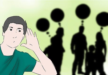 Be alert and listen to the conversations swirling around you whenever possible without looking like you're eavesdropping. Try to join conversations that discuss the girl you've chosen and find out as much as possible about her using the information you overhear, but don't eavesdrop. If you happen to overhear a private conversation. Listen politely and subtly, but stop listening at the appropriate times. Although people might not be aware that someone else is listening into their conversation, you know what you're doing, and you should respect their privacy, no matter how juicy the gossip may be.