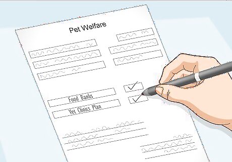 Apply for pet welfare. There are many charitable organisations that can help you take care of your pets. Food banks can dispense vegetables for your guinea pig, and modern vet clinics can set up a payment plan for vet bills. Pet fund is a charitable organisation that can help you with your vet bills.