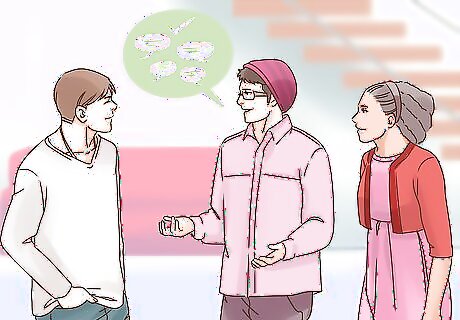 Join a small group or club. If you want to make friends or learn how to become more comfortable socializing, consider joining a group or club of only a few people. Choose something that interests you, like books or sports, and look for a group that is based on this subject. Talking about something you know and like can give you the confidence you need to put yourself out there and find others who enjoy the same things you do. To avoid putting yourself in a situation you don’t like, tailor your group experience to fit your needs. For instance, bring a friend, get there right as the meeting starts if you want to avoid small talk, and hang out together afterwards. The more you practice talking to people, the easier and more enjoyable it will become.