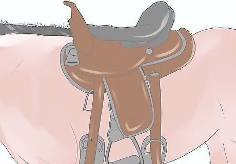 Position the saddle. Place the prospective saddle on your horse’s back without a saddle pad or blanket. Move it so that it is in the accurate position: the front of the saddle should rest on the withers without blocking the shoulder and the back should go no further than the last rib bone. Move the saddle back and forth a few times to find the ‘sweet spot’. You can also achieve this by rocking the saddle back and forth over the horse’s spine to ensure that it is well balanced.