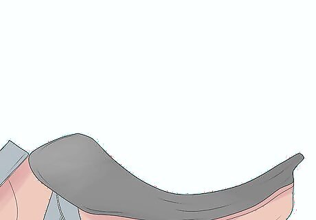 Check the gullet. The gullet is the long empty space that runs length-wise along the spine of the horse, and fitting this properly is crucial for preventing nerve pain and spinal injuries in your horse. A proper fitting saddle will allow you to see all the way through the gullet when viewed from the back. You should be able to fit 2 to 3 fingers stacked on top of the withers inside the gullet, just below the fork/swell (western) or the pommel (English). If you can’t fit at least 2 fingers in the gullet from the front, the saddle tree is too small for your horse and will pinch their spine. If you can fit more than 3 fingers in the gullet from the front, then the saddle tree is too large and will cause rocking and saddle sores on your horse.