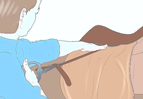 Test the girth. When you get the girth tightened on your horse, you should be able to fit four fingers side-by-side between the front of the girth and your horse’s shoulders. An ill-fitting saddle may cause the girth to fall forwards or slide backwards.