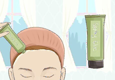 Dab a bit of spiking glue under the edge of the closure while it's on your head. Lift up the closure at the front, where it meets your hairline. Get a dime-sized amount of spiking glue on your finger and rub it into the scalp just under the front part of the wig. Cover about 1 inch (2.5 cm) on either side of your part with glue. Spiking glue is used to spike hair, but it's also helpful with wigs. You can find it at most drugstores or online. The spiking glue will help keep the closure from lifting.