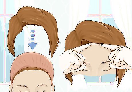 Apply pressure to the front of the closure. Hold the wig in place with your hand by pressing down on the front part near the hairline. It's important to keep it in place for a few minutes so it will stick. If you don't want to hold it in place with your hand, tie a silk scarf over the area to keep it in place.