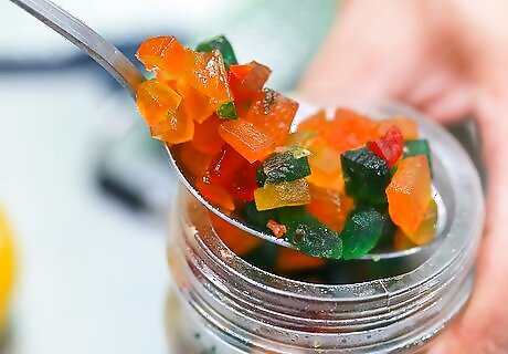 Mix the ingredients into one cup (240 mL) sugar. White granulated sugar is less likely to clump than most other sugars, making it a good choice for these moisture-containing ingredients. Feel free to experiment with other options if you prefer.