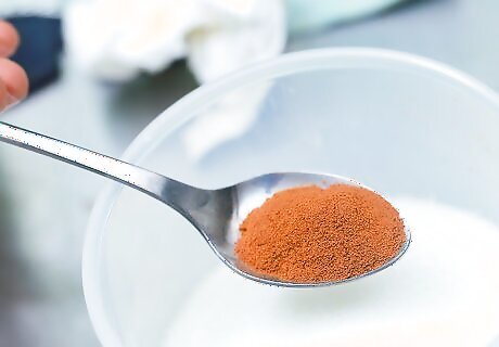 Add 2 to 10 tsp (10–50 mL) spices. For this method, use a dry, ground or powdered spice (or grind the spice in a spice grinder or mortar). Different spices have different strengths, so feel free to experiment. The range given is a good starting point, from 2 tsp (10 mL) for a touch of flavor, up to 10 tsp (50 mL) for a strong flavor. Cinnamon, cardamom, ginger, and nutmeg are all commonly used in desserts, making them an obvious option to pair with sugar. These work well alone or in any combination with each other. Cayenne sugar is a flavor for the fearless, adding a bold garnish to a plate or cocktail. Unsweetened cocoa powder, instant coffee, or other flavorful powders can also be added using this method. Try using 1/4 cup (60 mL) instead, since these tend to have a less concentrated flavor than spices.