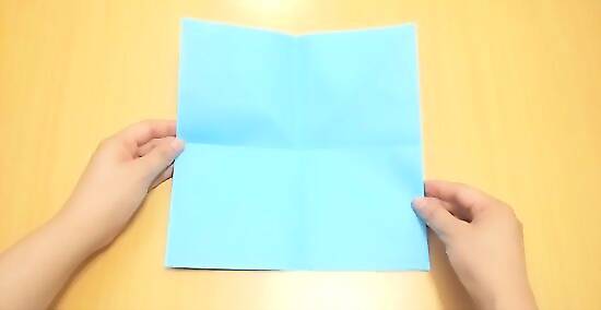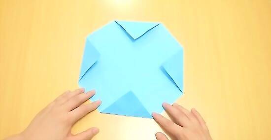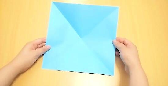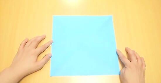 Turn the paper over and rotate it 45 degrees, so that it appears as a square.