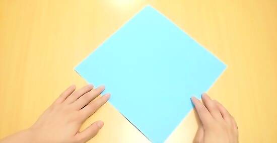 Rotate the other square of coloured paper in front of you, so that it appears as a diamond. (If you have paper coloured on both sides, the side that faces up now is the colour that will show in the end.)