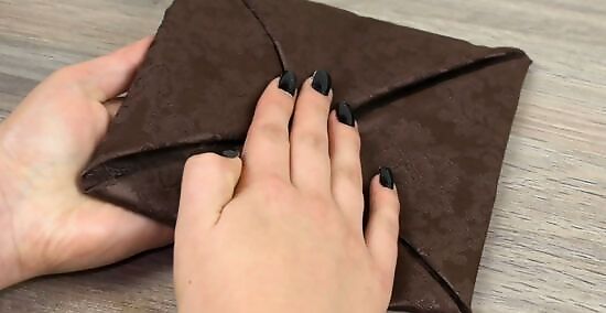 Flip the napkin over so no folds are visible. Grip the napkin with both hands and turn the folds face-down against the table or folding surface. Make sure to keep 1 hand secured along the center of the newest corner folds, so the material doesn’t get loose. Once you’ve flipped over the napkin, you can let go of the material. At this point, the napkin should once again look like a square.