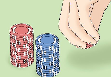 Sort your chips into easily identifiable piles. It’s both courteous and advantageous for you to keep your stacks chip stack easy to identify for the other players and the dealer because it makes it easier for you and other players to estimate how much you have left on the table, which is important to know when you’re considering your bets. Don’t block your chip stack with your hands and don’t take any chips off of the table to reduce the amount you have in your stack. Keep your chip stack in your area, don’t let them mingle with the chips of the players next to you.