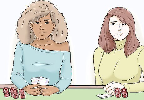 Keep your cool if you lose a round. Poker can have many intense and high stakes moments during a game. You may feel confident that you have a winning hand and will place a larger bet only to have another player defeat you with a better hand. If that happens, stay calm and polite. You would want another player to do the same if you were in their position. That also means you should avoid bragging or taunting if you win a hand. Keep a good poker face to avoid revealing anything to the other players at the table.
