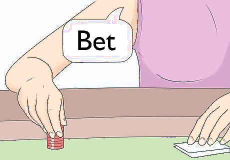 Keep your cards on the table in front of you. Most casinos prohibit removing cards from the table, but even if you’re playing at home, it’s important to keep your cards in front of you so a player sitting next to you can’t see them and so the dealer knows that you’ve received your cards and are still playing that round. It helps to avoid confusion at the table if everyone who is still actively playing a round keeps their cards in front of them.