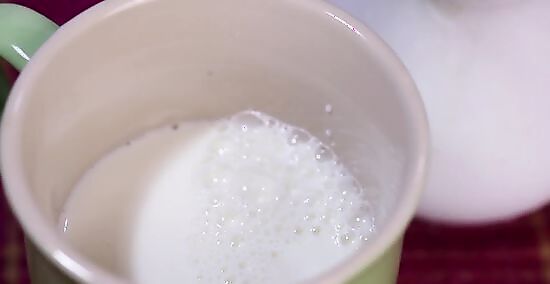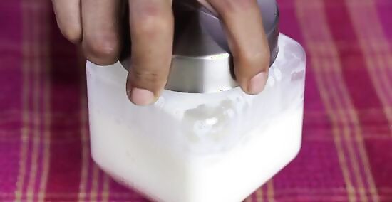 Pour the milk into a glass jar with a tight-fitting lid. Pour a 1/2 cup of milk into a glass jar. The milk should not rise above the halfway point, as you need to leave enough room for the froth to expand.