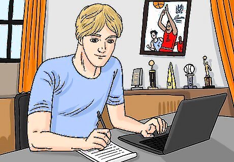 Work hard at school and do well in exams. You have to remember that college is first and foremost a place of education. If you get a scholarship, you will have to attend class, write essays, and take exams. Recruiters will be less likely to take a chance on you if you don't put in the work while you're in high school. Study every day and work with your teachers to improve in your weakest subjects. Make school work a priority. Complete all your assignments and hand them in on time. Study for exams so that you are prepared to do your best.