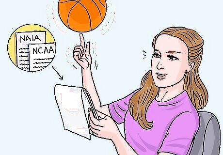 Find out the NCAA and NAIA student regulations. Each association has different rules and regulations regarding the recruitment process. It's important that you know the rules regarding contact with prospective coaches before you move further in the process. For instance, during a "quiet period," a college coach is not allowed to have in-person contact with you or your parents, watch you play, or visit your high school. Some of the NCAA requirements for scholarships include completing 16 core courses in high school, earning a 2.0 GPA or better in those 16 courses, meeting the sliding scale requirement of the SATs and ACTs, and graduating from high school. Read the NCAA Guide for the College Bound Student-Athlete here: http://www.amateursports365.com/NCAA/2017-18%20Guide%20for%20the%20College-Bound%20Student-Athlete.pdf
