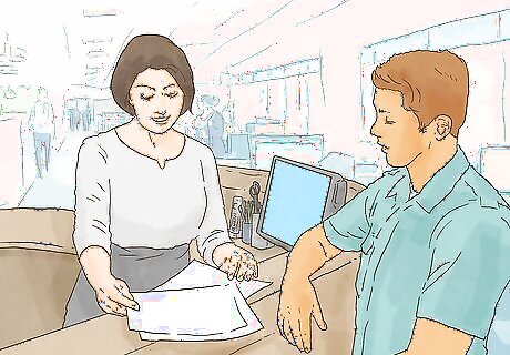 Apply online or in-person at your bank. In most cases, you will be able to apply for the credit card from your computer. If you prefer to go to your bank and complete the application in person, make sure that you bring all of the required documentation with you. When you arrive, ask to speak to an account representative. When you meet with the account representative, say “I would like a credit card application.”