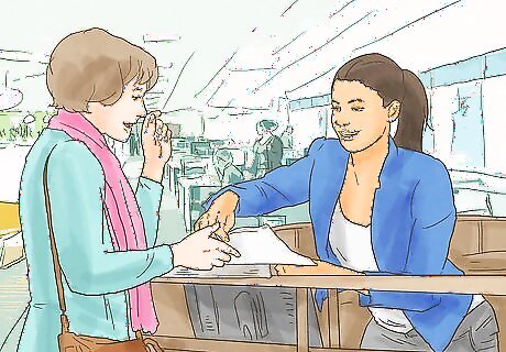 Talk to an account representative. When you arrive at the bank, your parent or guardian should ask to speak with an account representative. Your parent or guardian should ask the account representative for an “additional signer form” or say, “I would like to add an additional signer on my existing account.” Your parent or guardian should not say “I want to get a credit card for my child.” This could mean something different to the account representative and it might take longer to get the form that you need.