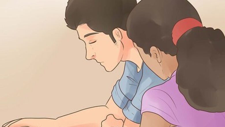 Skip the giggles. Laughing at someone's jokes is a way to show him that you like him. If you're trying to get him to understand that he shouldn't be interested in you, skip laughing at his jokes. If you laugh and smile at him, he may take that as encouragement.