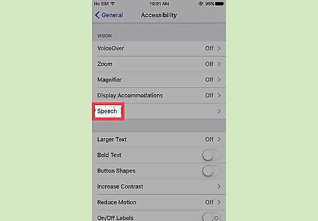 Tap Speech. It’s at the bottom of the first section, under “Vision.”