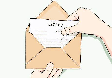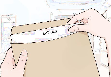 Wait to receive your EBT card in the mail. As soon as your application for food assistance is received, your county agency will place an order for your EBT card. Typically, this card will be mailed to you at the address you provide on your application. You should receive it within 7 to 10 days. If you requested that your application be expedited, you may be able to get your card sooner. However, this typically means you'll have to go to the county office in person to pick up your card.Tip: It's possible you'll receive your EBT card before your application is approved or any benefits are placed on it. Keep it in a safe place. You'll need it to use your benefits.