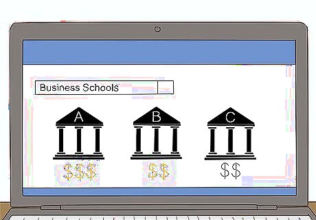 Research schools to find the right match for your goals and experience. You should spend a lot of time thinking of what you hope to get out of business school during the research process. Be honest with yourself about your strengths and weaknesses, and find schools which are a good match for your unique academic and professional goals. Choose schools which are accredited by the Association to Advance Collegiate Schools or Business (AACSB) to appeal to more employers after school.