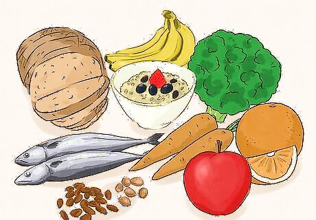 Choose nutritious, lean sources of protein. You've got tons of healthy options! Reach for eggs, fish, beans, and meats like skinless chicken, pork roast, or lean ground beef. Don't forget that low-fat dairy like milk, cheese, and yogurt are also good sources of protein and calcium. Try to go for unprocessed sources of protein. Processed foods like deli meat, sausage, and bacon are high in sodium and saturated fat. Nuts, legumes, and beans are all fantastic sources of protein for vegan and vegetarian diets.